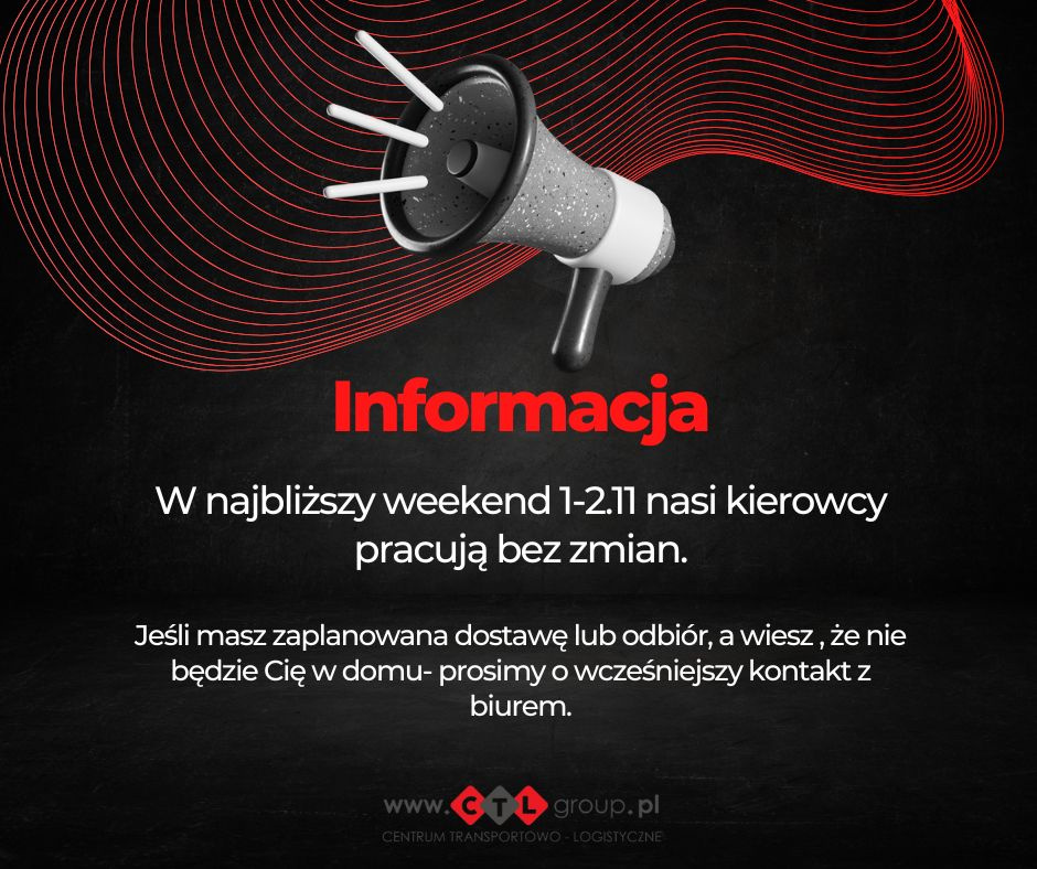 Informacja! W najbliższy weekend 1-2.11 nasi kierowcy pracują bez zmian.
