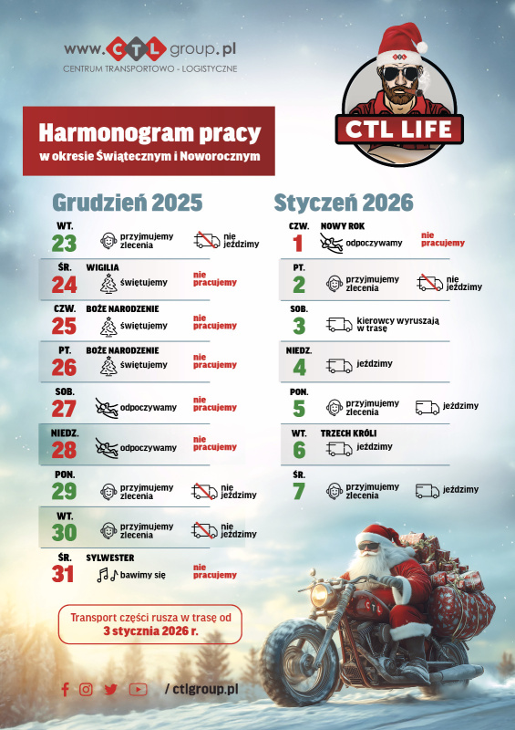 Ostatnia trasa wyjeżdża 15 grudnia, zapraszamy do składania zleceń jeszcze przed świętami.